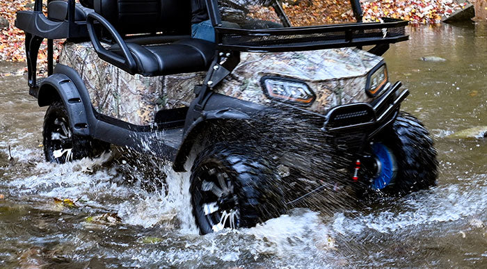 Conquer streams, deep puddles, and challenging muddy terrain with confidence. Our SilverWolf™ electric motor system is fully enclosed and waterproof. Once your adventure is over, simply park your golf cart in an open area to dry out.